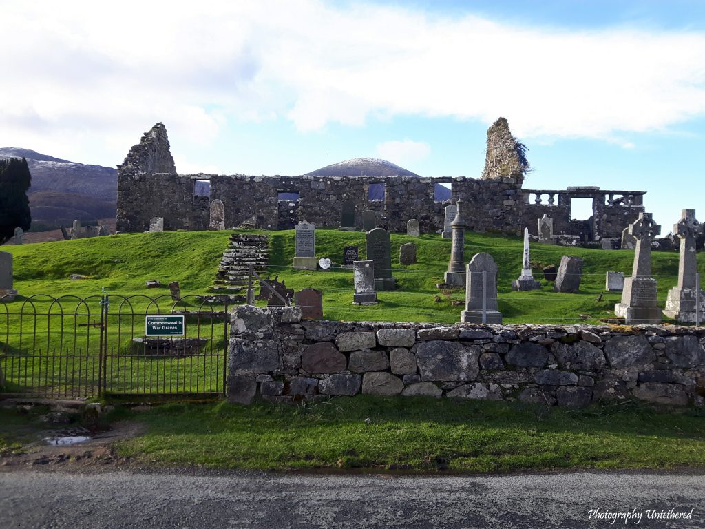 The B8083 offers another interesting sight amongst the ruins of Cill Chriosd, or Kilchrist (Christ’s Church). Set in a natural amphitheatre of majestic hills the ruins are thought to date back to 600AD. I never fail to stop here when on my travels due to its all-pervasive ghostly feel. There are many old memorials and graves stones. One Celtic Cross stands out: that of the McLeod family who’s service to the Country is more than deserving a brief mention here.